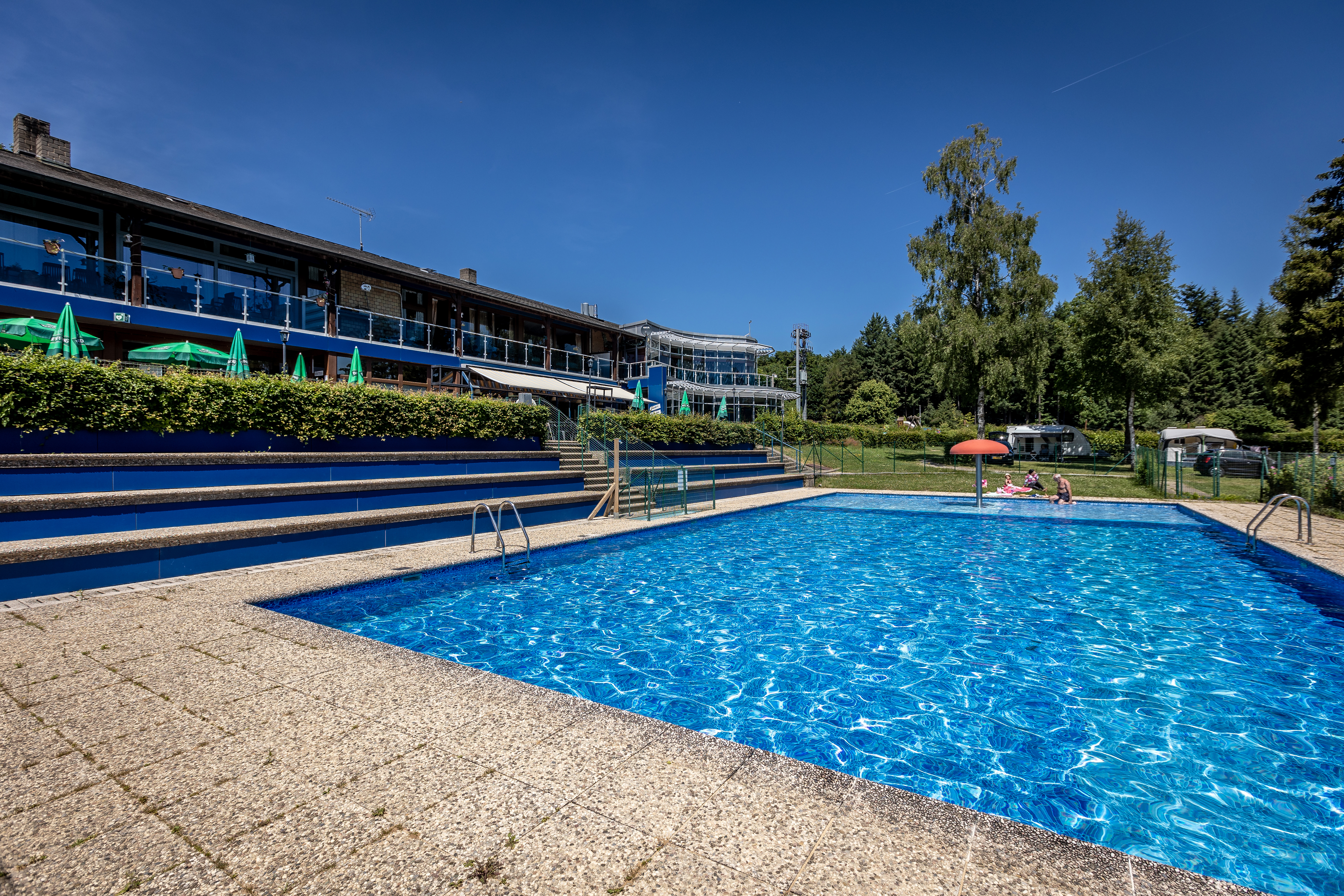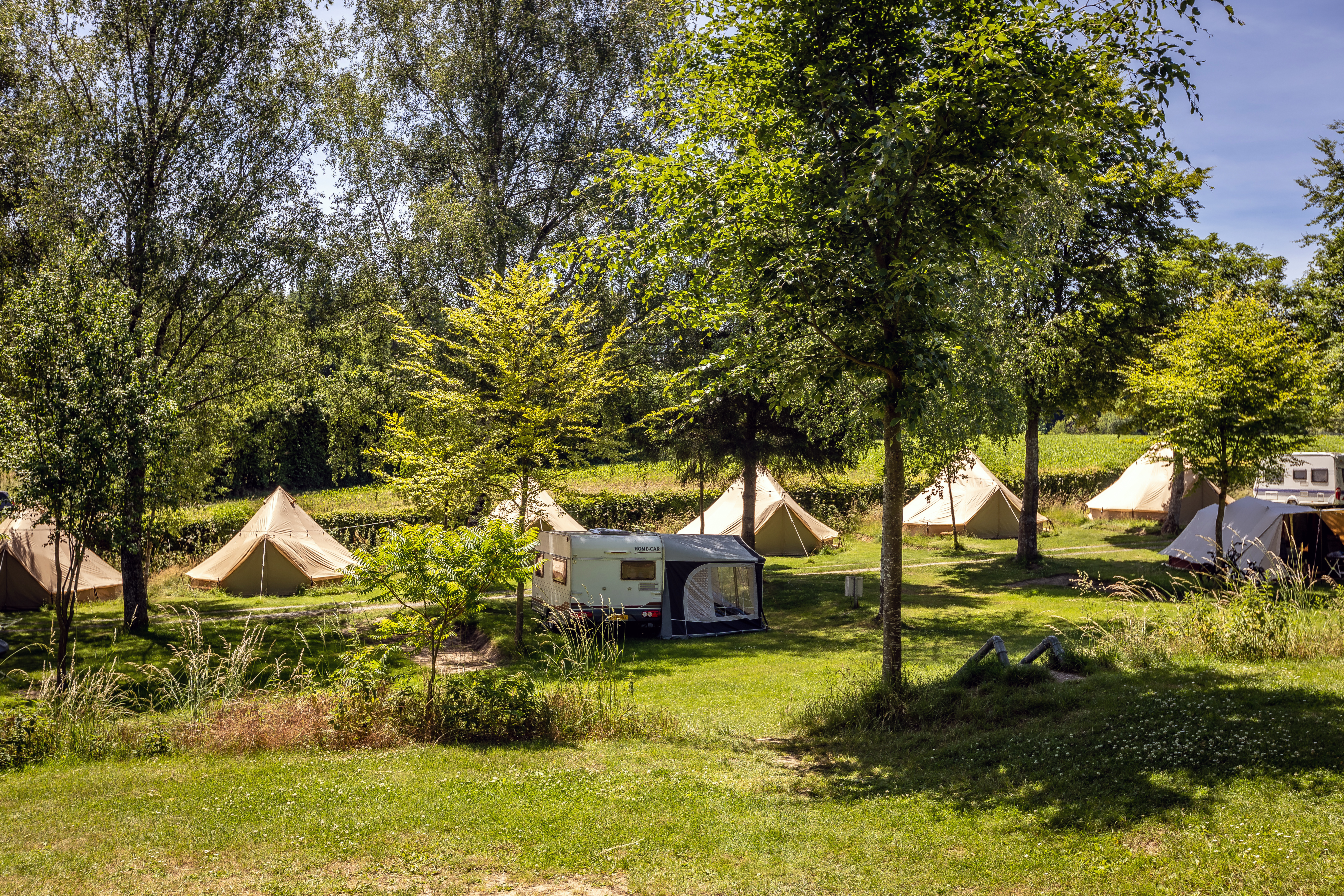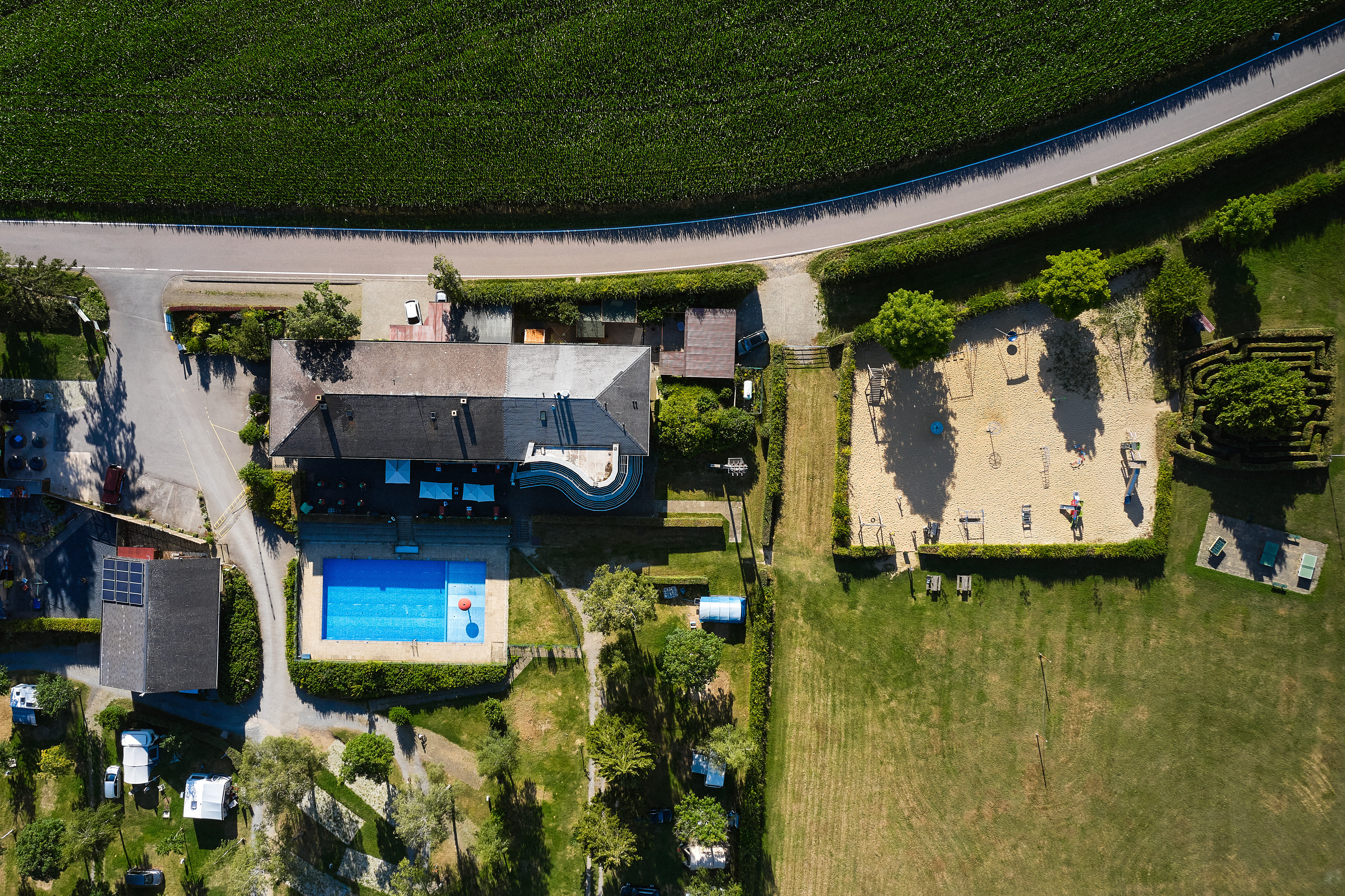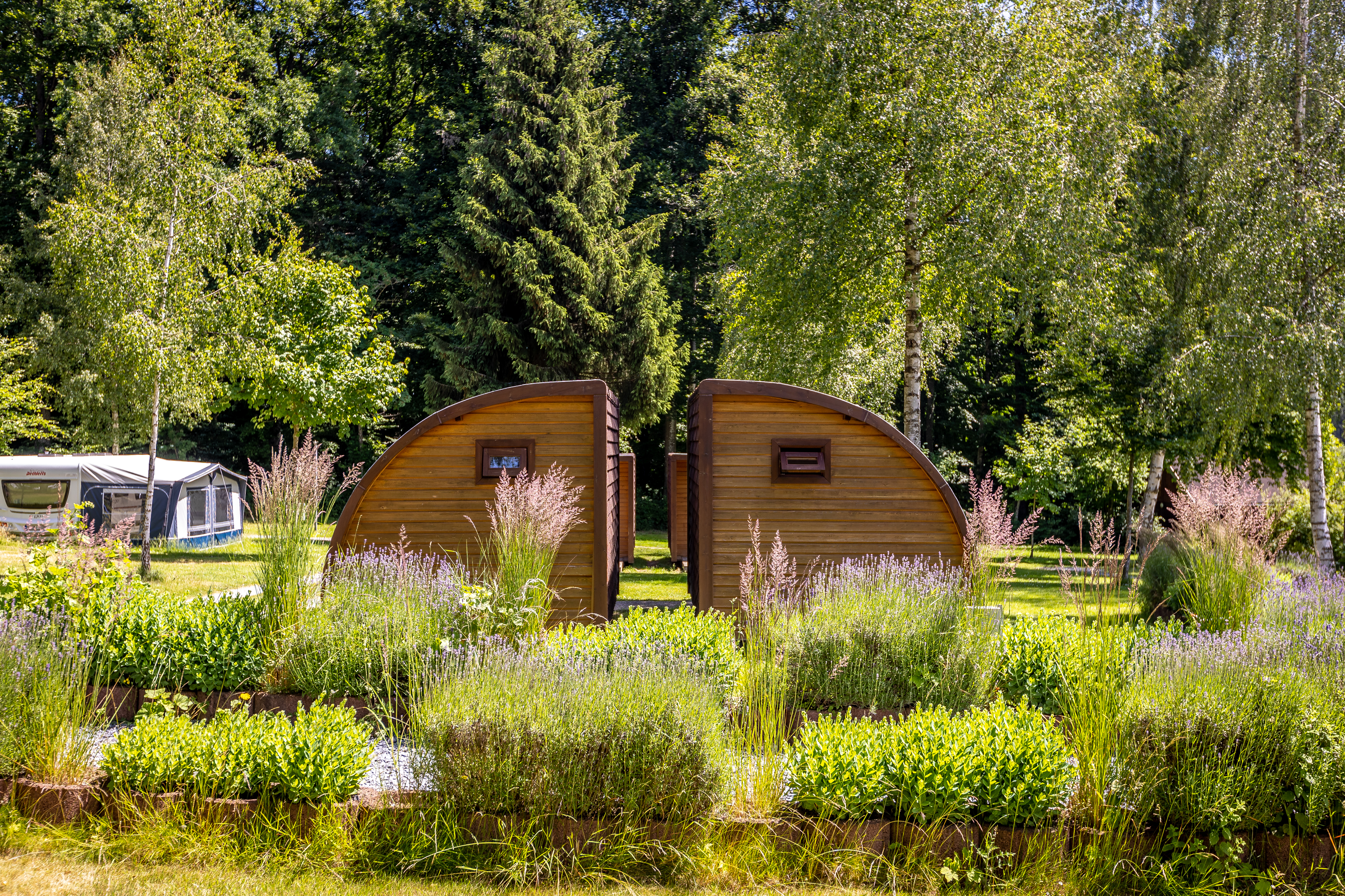 La piscine en plein air du camping ainsi que le sentier pieds nus sont de véritables atouts.