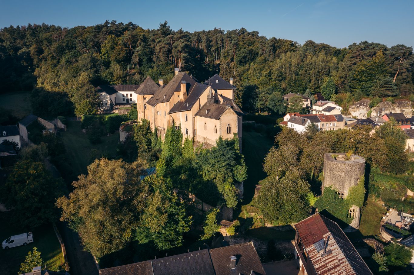 Het kasteel kijkt uit over het pittoreske dorpje Larochette, waardoor het een heel bijzonder karakter heeft. De eerste gebouwen op deze site dateren uit de 11e eeuw en zijn gelegen op een voorgebergte van Luxemburgse zandsteen en domineren de vallei van de Ernz Blanche, een zijrivier van de Sûre, met ongeveer 50 meter. Een brand in 1565 reduceerde alle gebouwen op het terrein tot ruïnes. Het huis in Créhange is het enige dat in de jaren tachtig op een meer consequente manier is gerestaureerd.